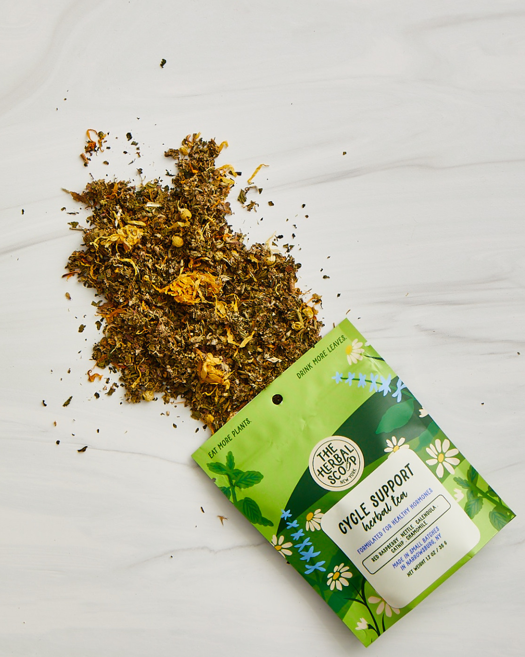 BEST SELLER 4 years in a row! Catskill Cozy is a premium, loose-leaf herbal tea that is a consistent top-seller. It’s the perfect fit for the modern wellness consumer looking for a simple, natural way to de-stress. We’re confident this blend will be a high-turnover item on your shelves, appealing to anyone who needs a moment of quiet in their day. It’s an easy "yes" for your customers and for your bottom line. Key Selling Points- Aromatherapy and Flavor: This herbal tea has a clean, comforting flavor with notes of citrus and mint, making it a delicious and approachable sell. Organic Herbal Tea Ingredients: The blend includes chamomile, ginger, holy basil, linden, orange peel, maypop, and peppermint. Customer Benefits: Stress Relief: The blend of chamomile, holy basil, and linden is specifically formulated to help customers de-stress and quiet their minds. Digestive Support: Ginger and orange peel work together to soothe the stomach, helping customers find comfort after meals. Restful Sleep: Maypop and chamomile are traditional herbs known to promote a sense of calm and prepare the body for restful sleep. Marketability: A perfect entry point for customers new to loose leaf tea, this blend’s focus on relaxation and comfort makes it a staple for any tea aisle.