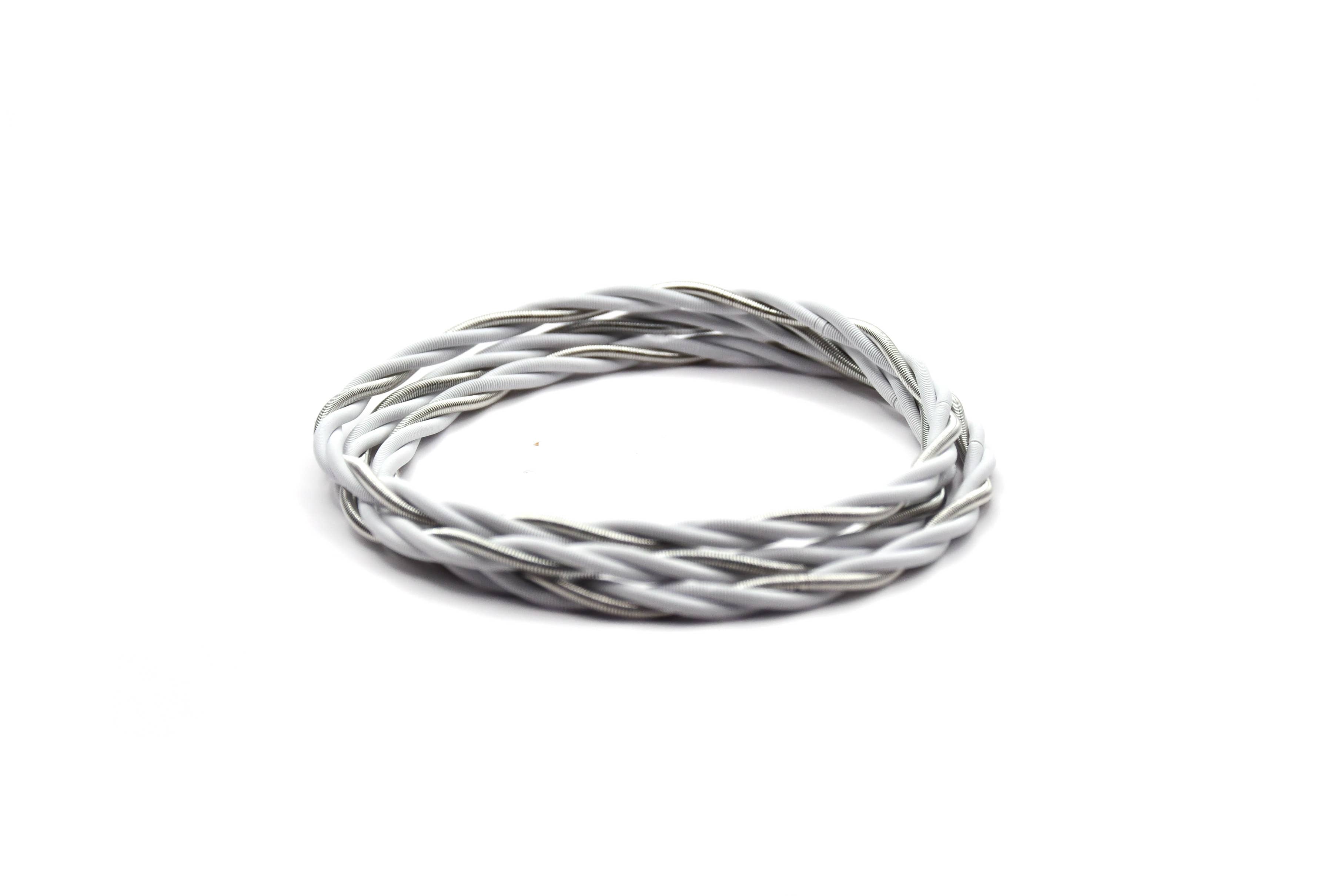 One-size-fits-all. Seriously, just bend and shape to suit any wrist. Made from real guitar strings. Don't get 'em wet! Approximately 9 inches in wrap length, 0.14 in width and weighs 0.04lbs.