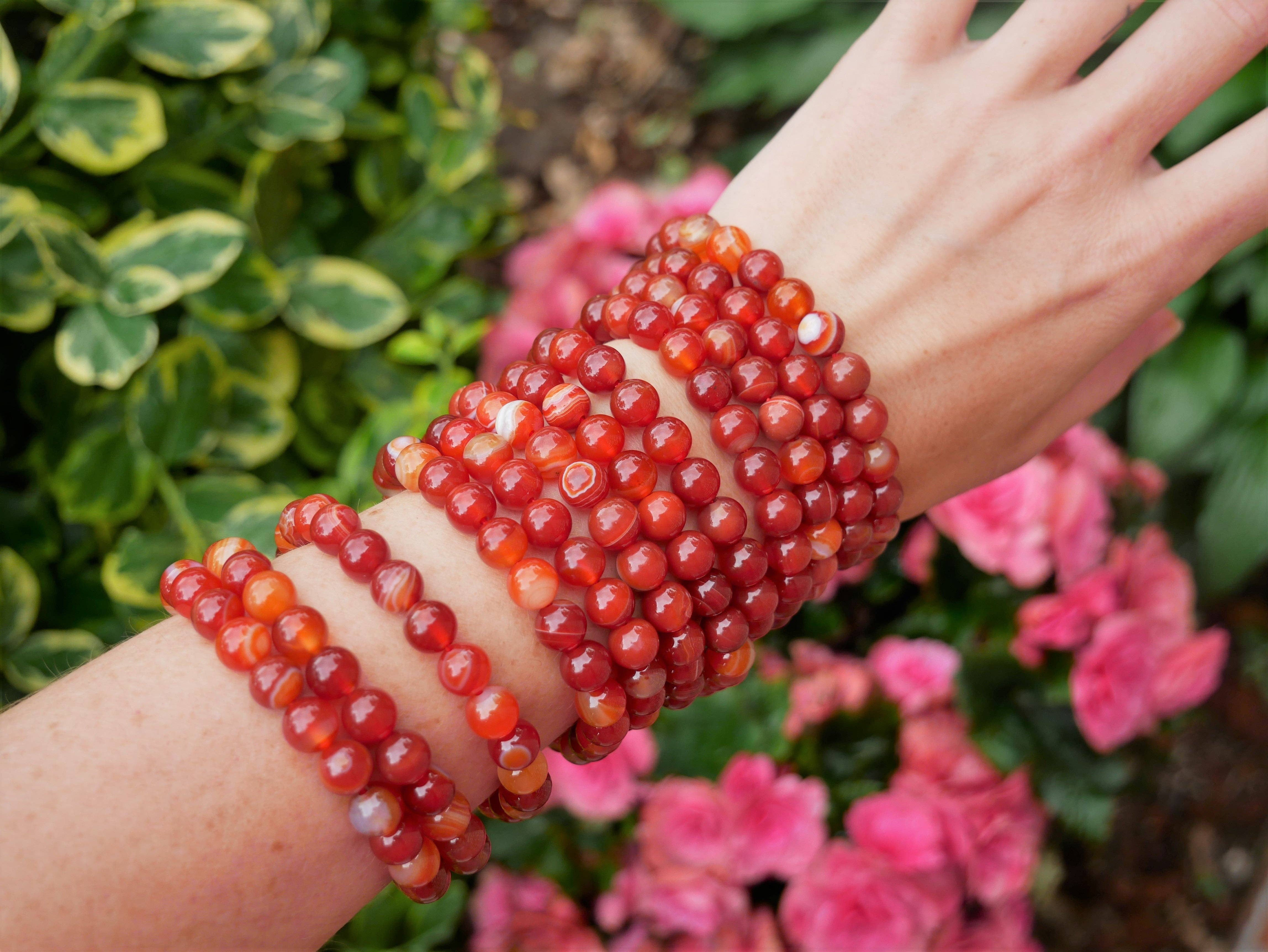 This Ruby Crystal measurement is approx. 8mm. This natural healing stone bracelet looks both beautiful, are high quality and luxurious but at a fraction of the price. All strings are strong, durable and very much stretchable to fit over the hand nicely without breaking or hurting the wearer.
