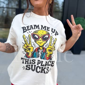 Wholesale Beam Me Up, This Place Sucks Funny Alien Ringer T-Shirt