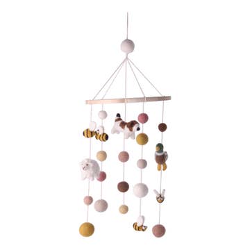 These mobiles are perfectly balanced for the most graceful movement. Pull and release the bottom string and watch them fly. Each is constructed of medium-density fiberboard, hand-painted with non-toxic acrylic paint, and decorated with dyed tagua nuts. Best enjoyed indoors in any room of the house. If hung outside, keep dry. These whimsical flyers are handcrafted by a woman-owned business in Colombia and packaged in custom-printed mailer boxes by another woman-owned business in Chicago. Wingspan: 12in. KEEP OUT OF REACH OF CHILDREN AGE 3 OR YOUNGER.