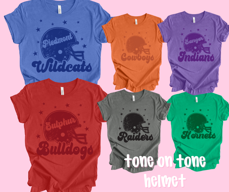 Our highly anticipated Natural Camo Team Tees are here — and they’re everything you hoped for and more. Screen printed with bold puff ink, these tees bring just the right amount of pop to a neutral, game day-ready look. Screen printed with puff ink / 12pc min per wording / 17 Leave team mascot or wording
