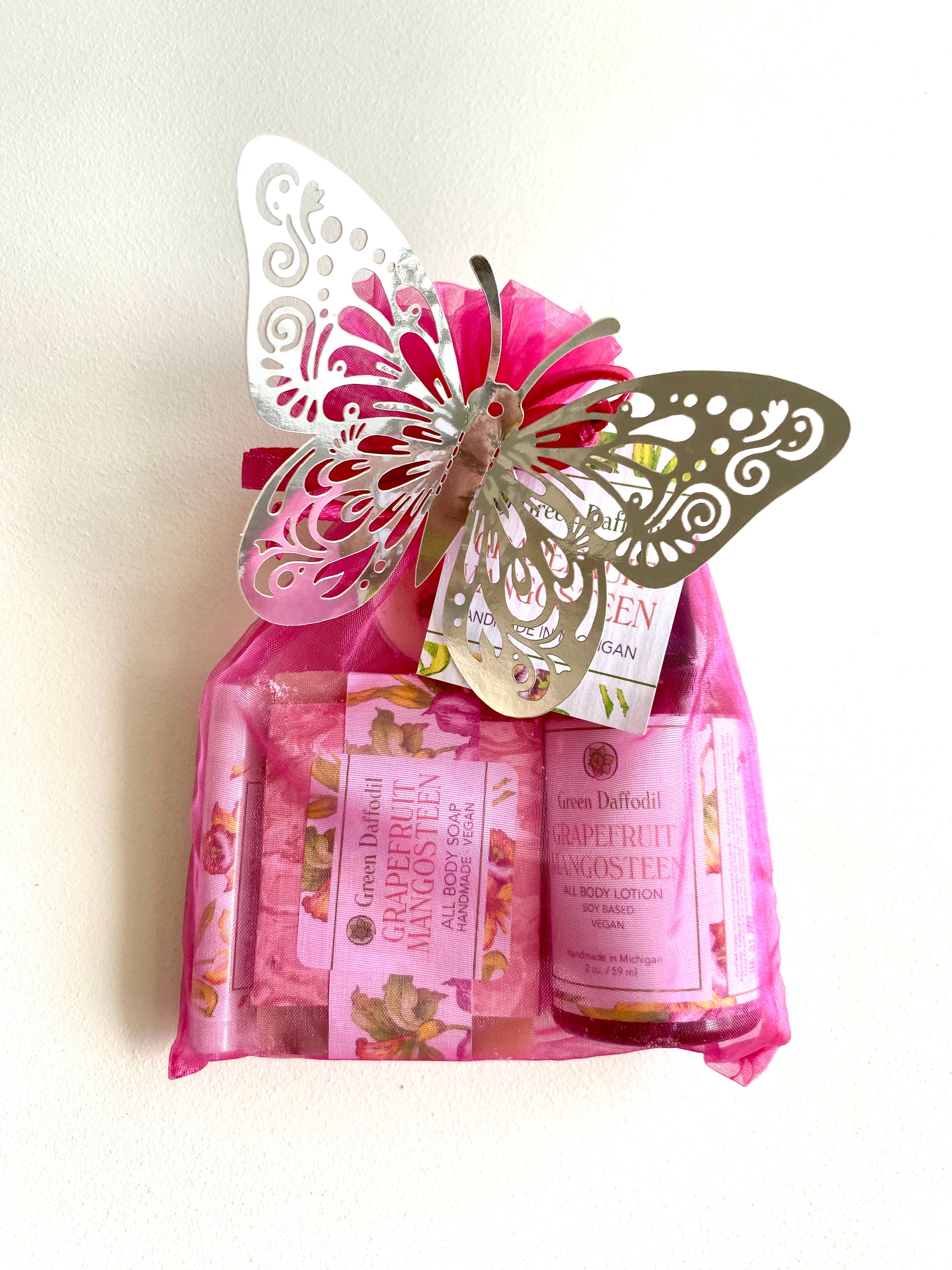 Lavender - what more can we say about this wonderful classic scent? We must say, though, that not all lavender candles are created equal. Ours is dead-on to the herb. It's so calming and wonderful. Each gift set contains a Lavender individual soy candle tea light, a bar of soap, a mini soy lotion bottle, and a tube of Lavender flavored lip balm. All these goodies are beautifully packaged in a organdy bag and finished with ribbon and hang tag! These are perfect ready made gift sets for birthdays, weddings, baby showers, Mother's Day, and so much more! Made in Michigan!