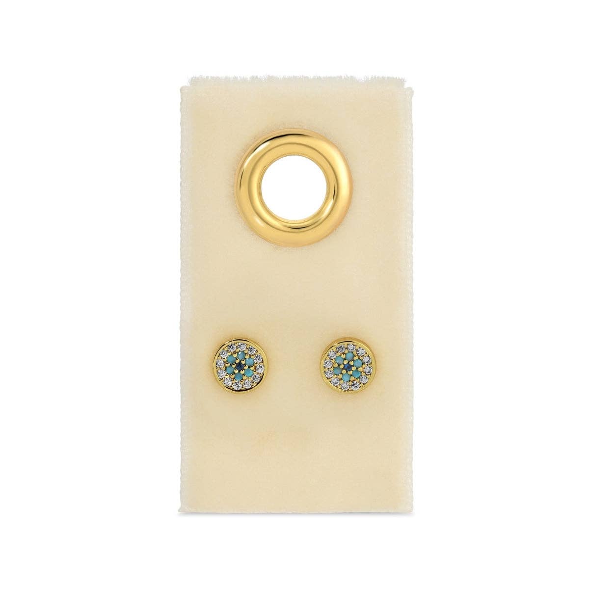14K Gold Filled Turquoise Gemstone Micro Paved CZ Round Stud | P473