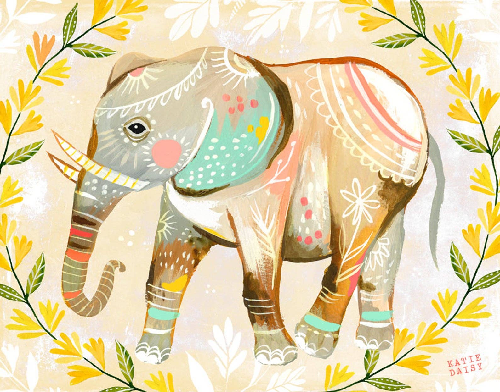 Oxeye Floral Co. - Wholesale Art Print - "Evelyn" Elephant Print | Pressed Flower Art0