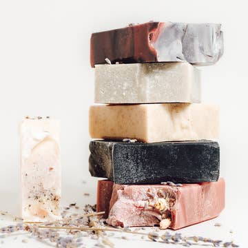 These soap ends are sliced from our special holistic cleansing bars. You'll get a random selection of 5, all wrapped in jute twine. They're great for travel, gifting, or just trying out different scents. Soap Bars: Tangy Turmeric Bow & Tie Bee Healed Lavender Chamomile Sunrise Coconut + Coffee Scrub Porridge Free Spirit Smudg'