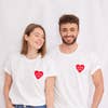 A crush for Valentine's Day! The new unisex white cotton t-shirt with its sewn red patch. A touch of modernity with its red embroidery. A cotton t-shirt for both men and women. It aims to be unisex, timeless, and bold. Looks for her and him, a boyfriend t-shirt for a shared wardrobe. Its bright red embroidered heart will make you fall in love. Consider giving it for the upcoming Valentine's Day :) Guaranteed crush!