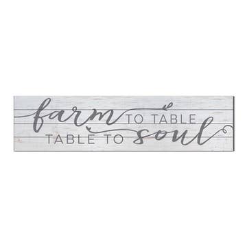 This unique sign makes the perfect statement piece for any dining room or kitchen. This FARM TO TABLE sign has a modern farmhouse feel and features elegant typography that is printed directly onto the sign. 40x10 Inches. Ready to hang. MADE IN THE USA with love.