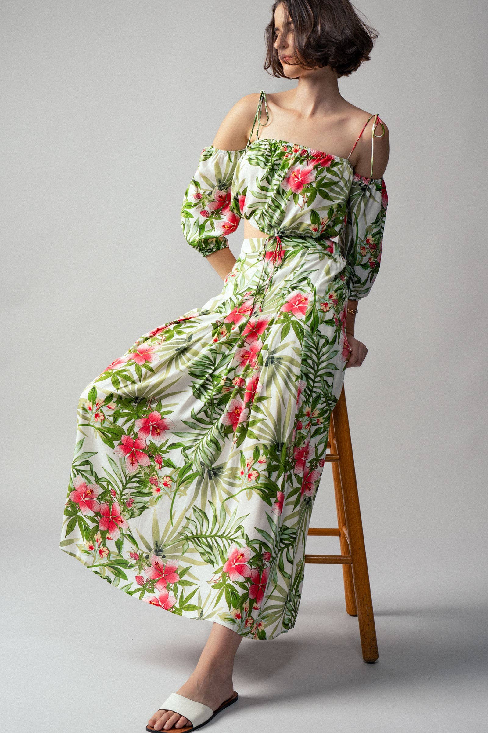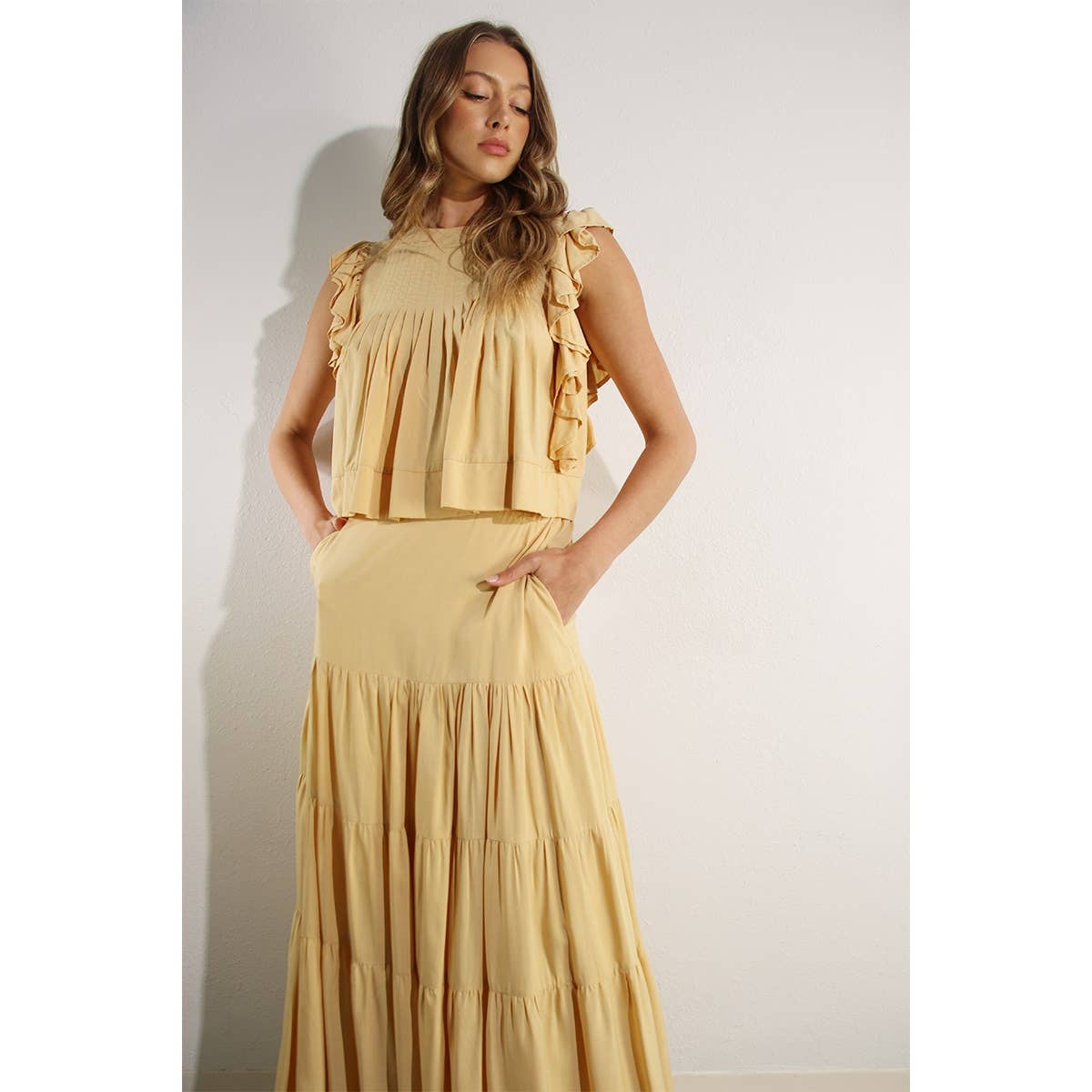 Wholesale Flowy Cotton Tiered Skirt with Pockets and Halter Top