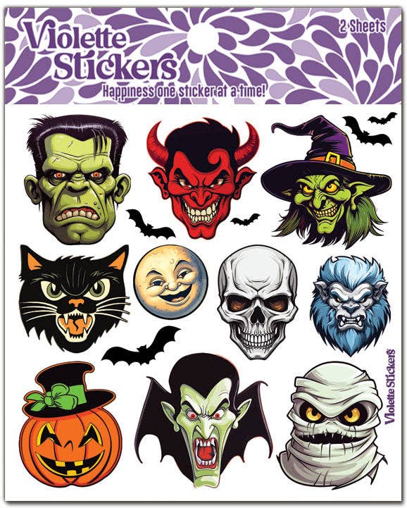Witchy halloween wishes with this sweet red haired witch. 2 Sheets of 4" x 4" stickers packaged in a plastic sleeve.