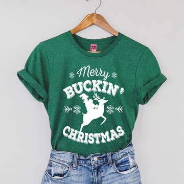 Merry Buckin Christmas Graphic Tee - Heather Green