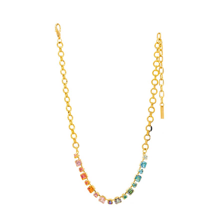 Make a sparkly statement in style with the Mini Sofia Necklace in Flamingo Mix! This distinctive design, crafted from a high-quality Antique Gold plated, Brass base metal and adorned with gleaming crystals, will be sure to get your neckline noticed. Plus, with a 16" chain plus a 4" extension, it's totally adjustable for your perfect fit!