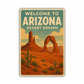 A vintage travel art design featuring the Cadillac Ranch in Amarillo, Texas. This colorful, vibrant & fun retro illustration features desert scenery, antique automobiles and a fun road trip vibe. This metal sign can be hung indoors or outdoors and offers a lot of versatility for your home wall art decor. Give your living room or office a nostalgic flair!
