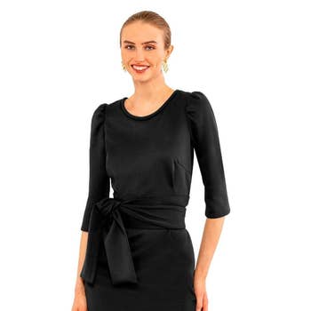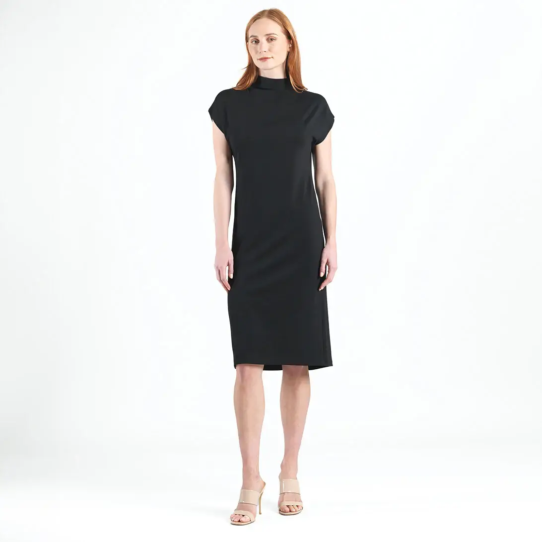 Our most elegant and sophisticated silhouette is the perfect day to evening dress. Techno-crepe fabric - luxurious crepe on the outside that feels and moves like athletic wear on the inside. Machine washable and wrinkle resistant. Best on straight & narrow, athletic, apple, petite, and short-waisted/long-waisted body types. Full length sleeves. High quality smooth-action invisible back zipper.