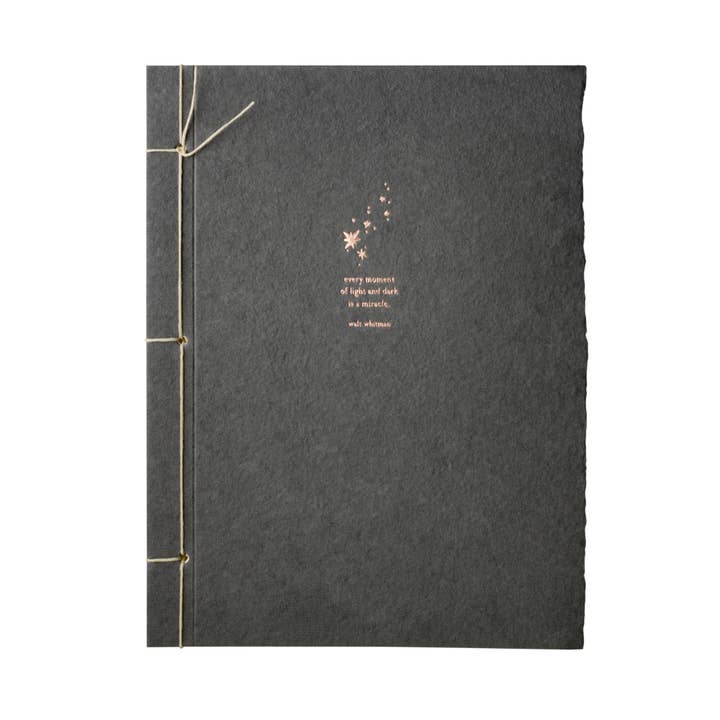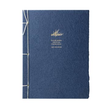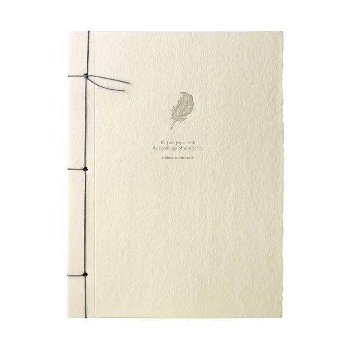 our inspiration journal collection features a minimal design with striking quotes from prominent individuals on a handmade paper cover. carefully hand-bound in our portland paper studio. live in the sunshine, swim the sea, drink the wild air - ralph waldo emerson - champagne foil letterpress on denim handmade recycled cotton paper with one natural deckled edge - 5.75 x 7.75 inch japanese stab-bound journal with 100 lined pages - packaged in a clear sleeve