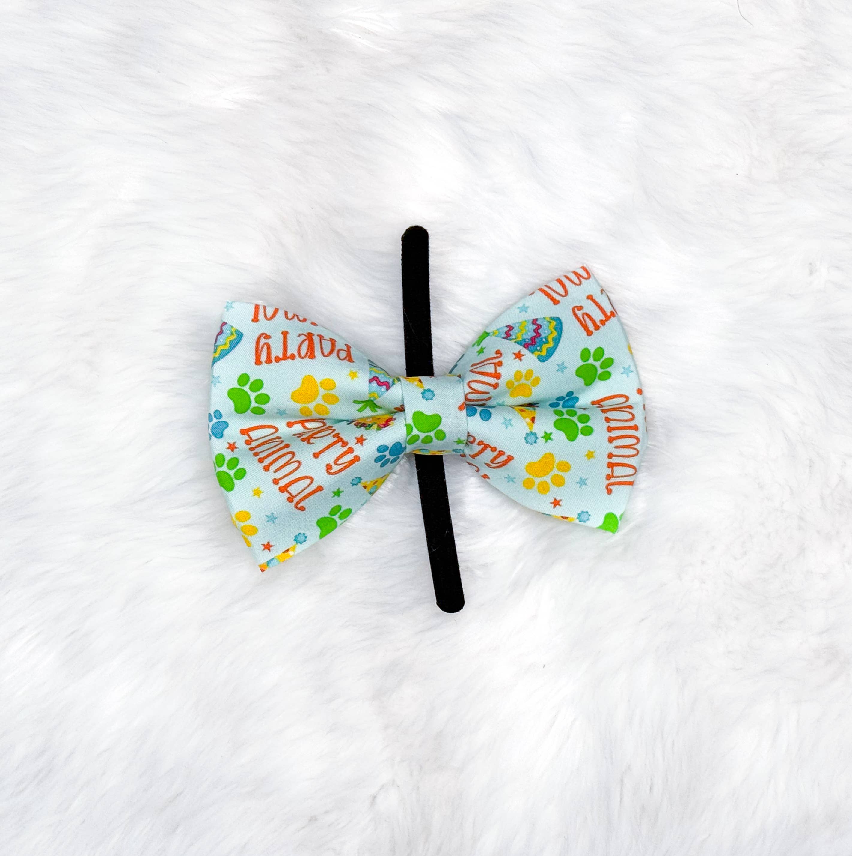 Pet Pooch Boutique Bow Tie Fun, and attractive over sized bow tie made from 100% cotton. Simply slides on to most sized collars upto 1.5inch wide Features  Lovingly handmade in the UK Suitable for most breeds Bow tie measures approx 6 inch wide (15cm) X 2.5 inch (6.5cm) high Elasticated loop which simply slides onto collars up to 1.5 inch wide Huge variety of other designs available Unisex design Double sided pattern Layered with interfacing to create a crisp bow tie that keeps its shape Guaranteed to make your dog the most stylish pup in the street!.