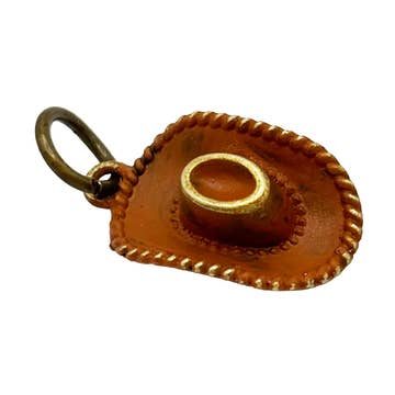 Yeehaw! Saddle up for country style with our Cowboy Hat Charm – the perfect accessory for cowgirl flair. Measurements: Charm is approximately 3/4” long. Available Styles: Charm - Loose Charm on Card Charm Bracelet - 7 1/2” brass hook bangle Charm Necklace - 18” antique bronze ball chain Artisan Touch: Our skilled artisans hand-paint each charm in Denver, CO. Hypoallergenic: All our accessories are lead-free and nickel-free.