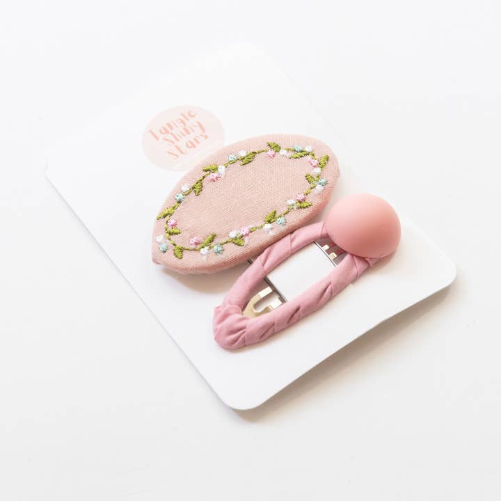 No reviews for Oval Embroidered Floral Snap Hair Clips | Light Pink & Beige yet.