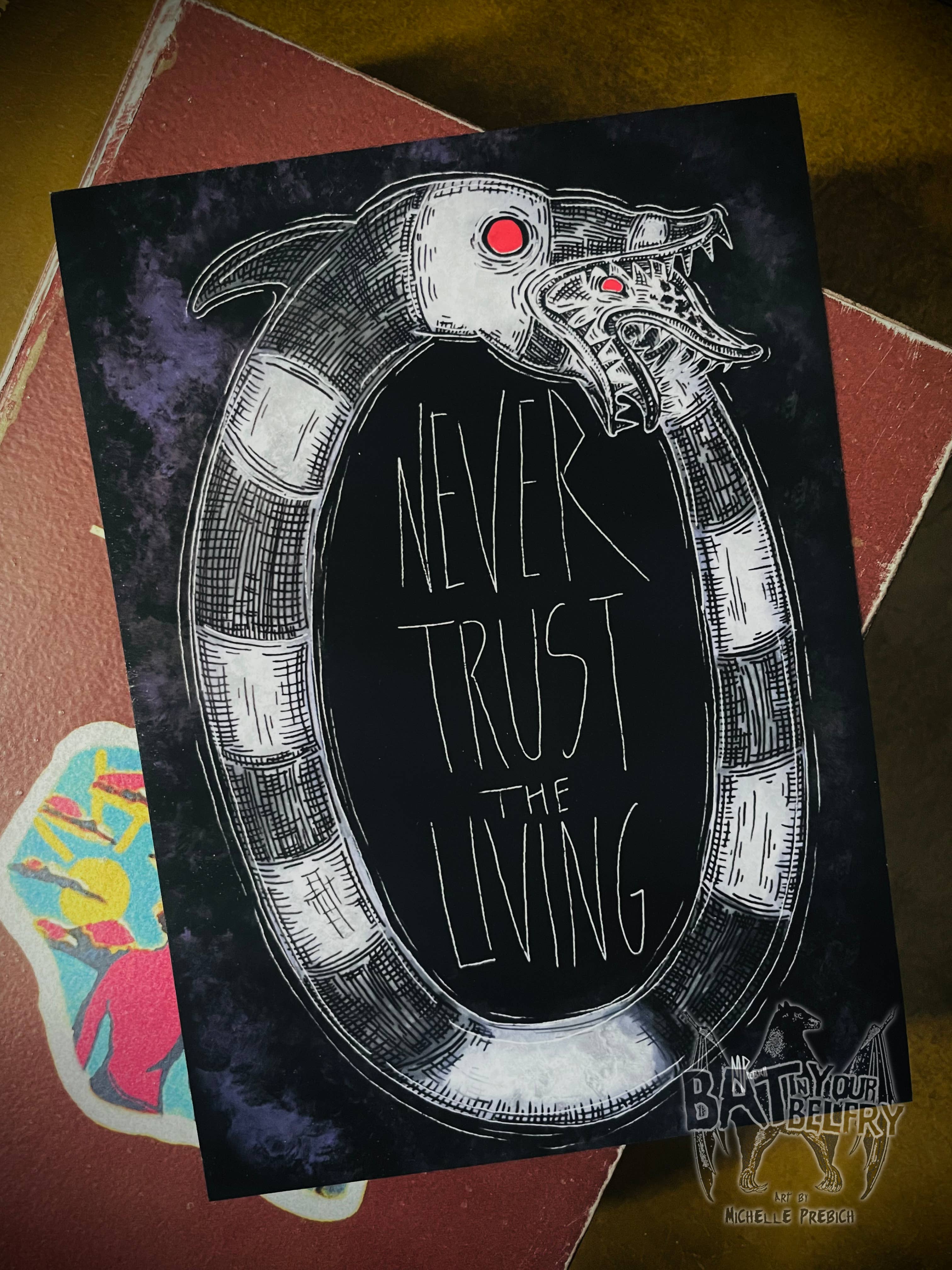 Archival Art print on gorgeous mat paper. Each print come stamped with the Bat in Your Belfry Logo on the back and is packed with care with a sturdy backing board and clear bag.
