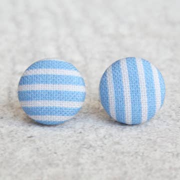 Blue Stripes Fabric Button Earrings