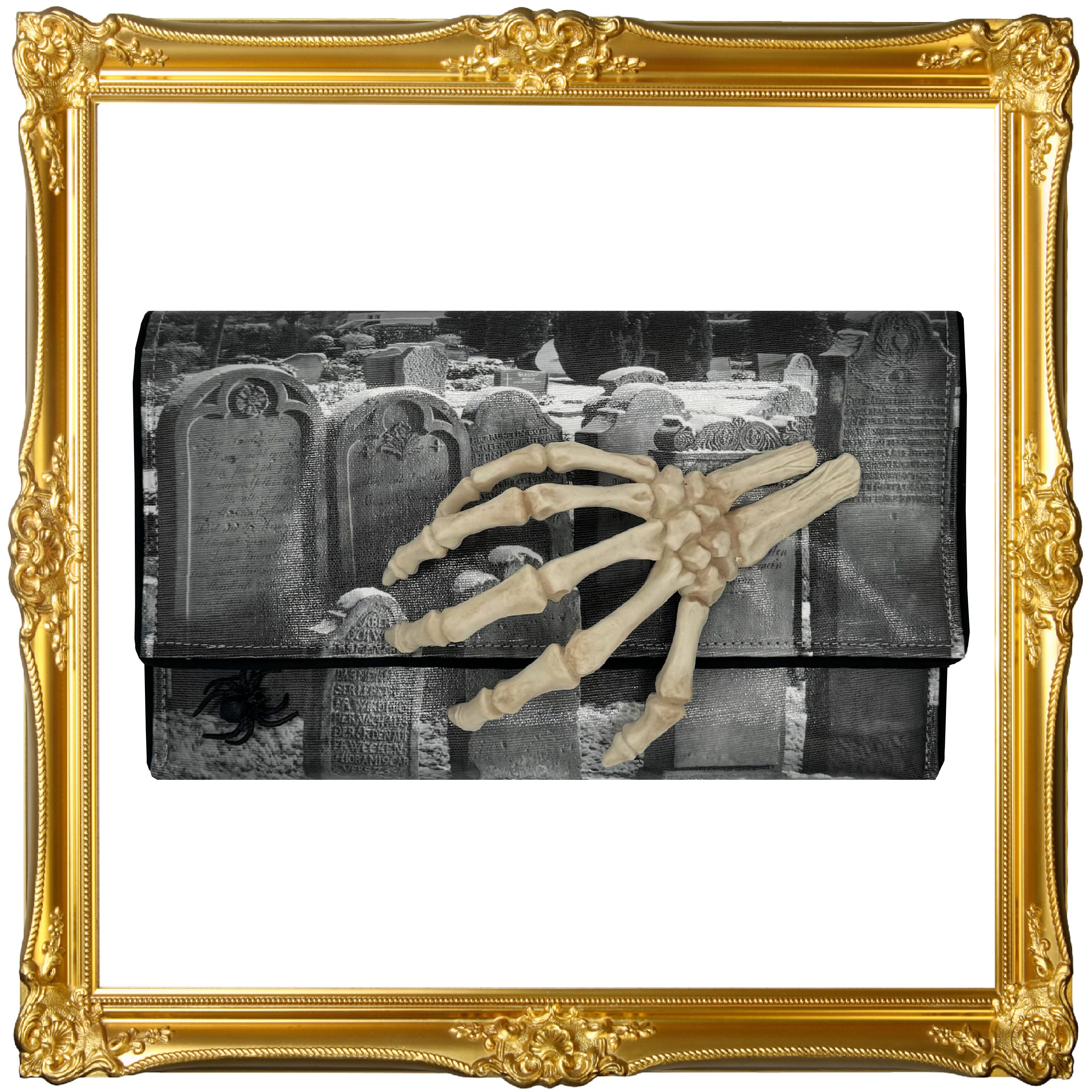 Celebrate spooky style with the Book of Halloween Book Clutch Bag in Vinyl, a literary-inspired accessory based on the 1919 classic The Book of Hallowe’en by Ruth Edna Kelley. Perfect for Halloween enthusiasts, gothic fashion lovers, or anyone who believes every day can be Halloween, this clutch combines unique design with everyday functionality. ✨ Features: Uniquely designed to resemble a vintage book Zippered main closure Fabric-lined interior with divided compartments Additional zippered interior compartment for secure storage Includes a 6in detachable wristlet strap and 24in adjustable and detachable shoulder strap Crafted from high-quality vinyl material Measures approximately 4.5in (L) × 1.5in (W) ✨ Perfect For: Halloween lovers and gothic fashion enthusiasts Everyday wear with a statement literary accessory Boutique shoppers seeking unique and conversation-starting handbags Gift-giving for birthdays, holidays, or novelty collectors Keywords: halloween book clutch, spooky book purse, halloween handbag, gothic clutch bag, vintage accessory, pumpkin purse, witchy book bag, halloween gift for women, novelty gift bag, birthday gift