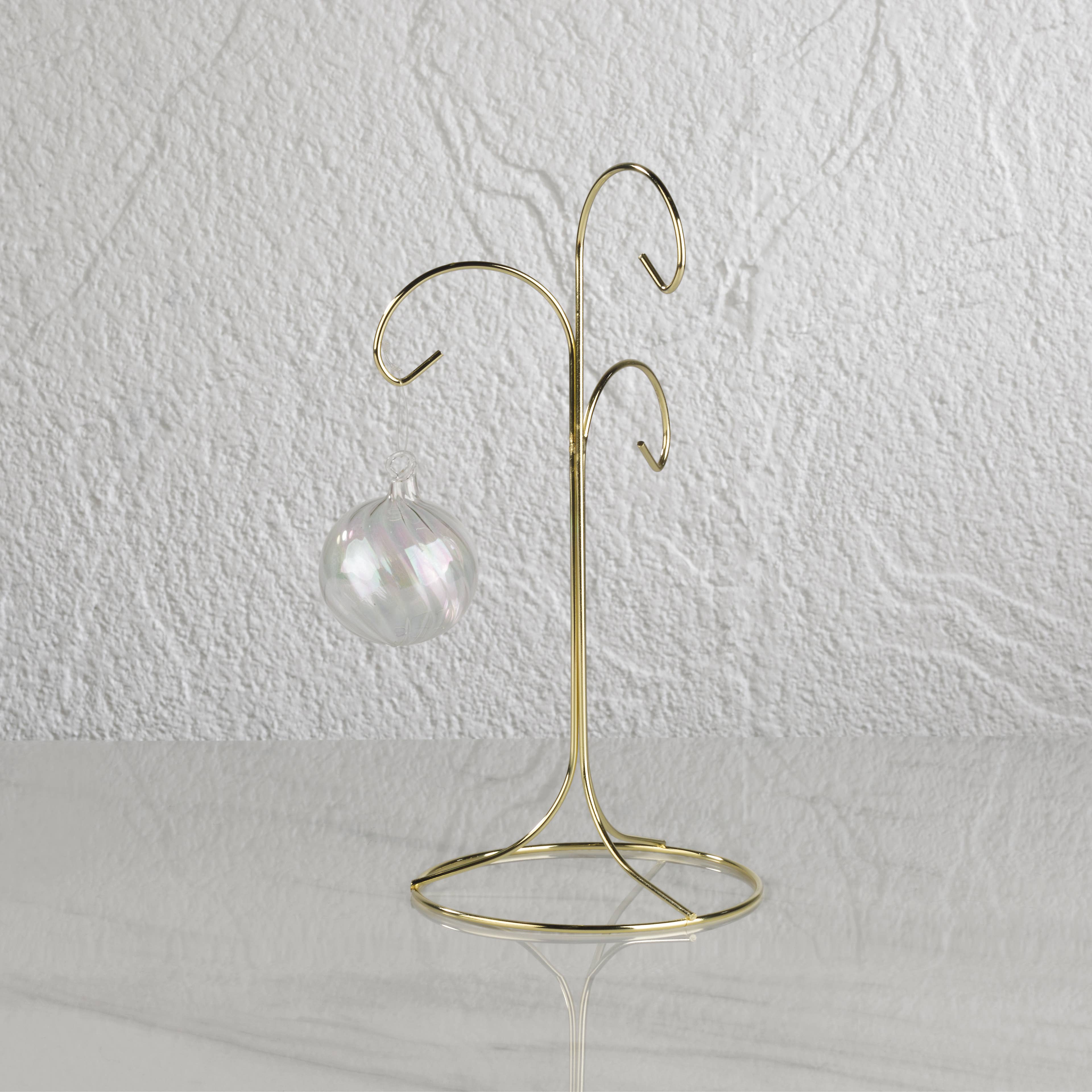 Add a touch of elegance to ornaments, jewelry or other specialty items with our Spiral Ornament Trees. Constructed of a round metal wire, this piece features matching swirl accents on the base and hanging sections. It is perfect for specialty items year-round. Available in 2 sizes and 3 colors. Small Ornament Stand -Available in Black, Gold, and Silver -Features a 7.5" hanging height -Holds 1 ornament -Dimensions: 5.5" L x 4.5" W x 10" H, 2.6 oz Large Ornament Stand -Available in Black, Gold, and Silver -Features a 10" hanging height -Holds 1 ornament -Dimensions: 5.8" L x 4.8" W x 13" H, 3.8 oz
