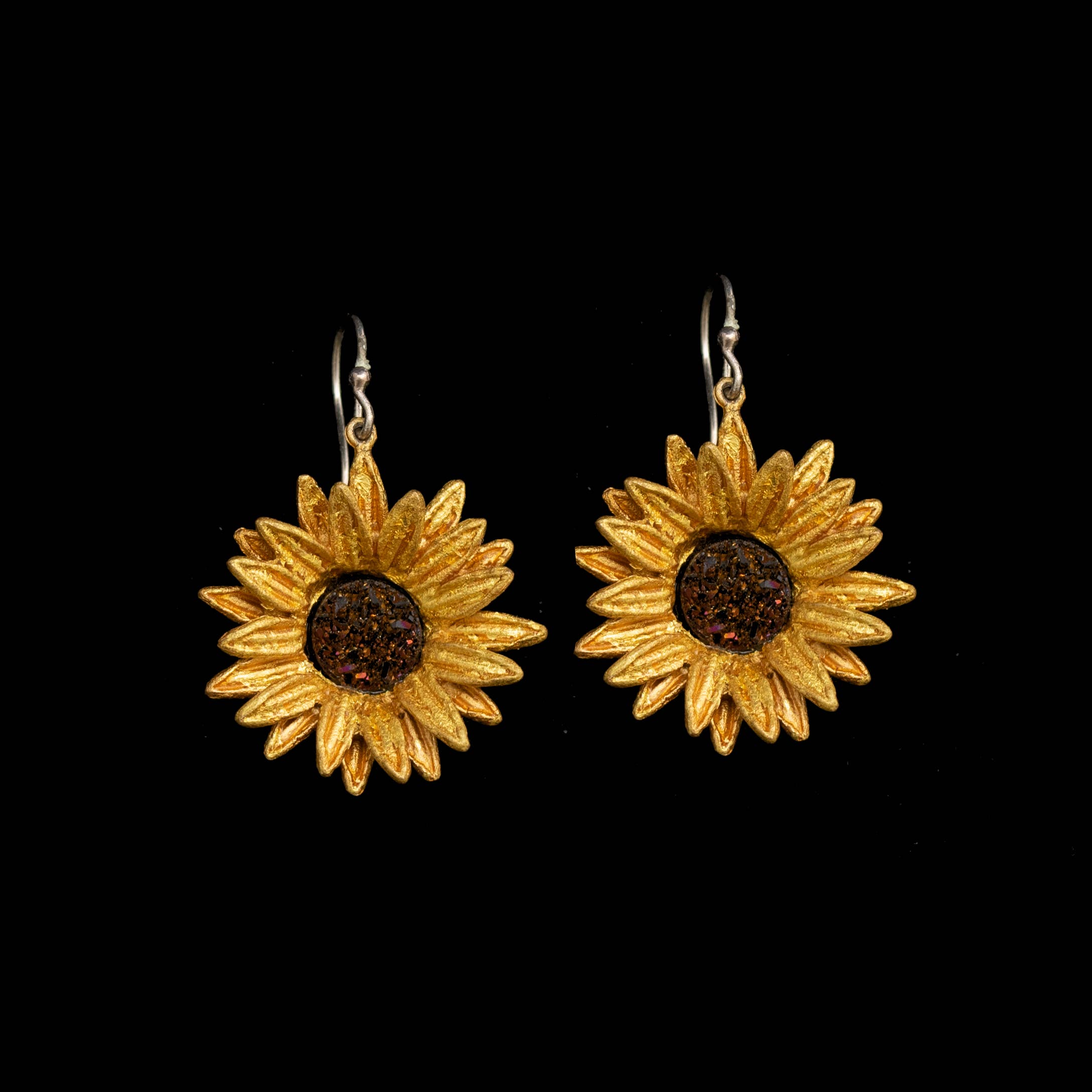 Cast bronze with a 24k gold finish. Accented with druzy stones.