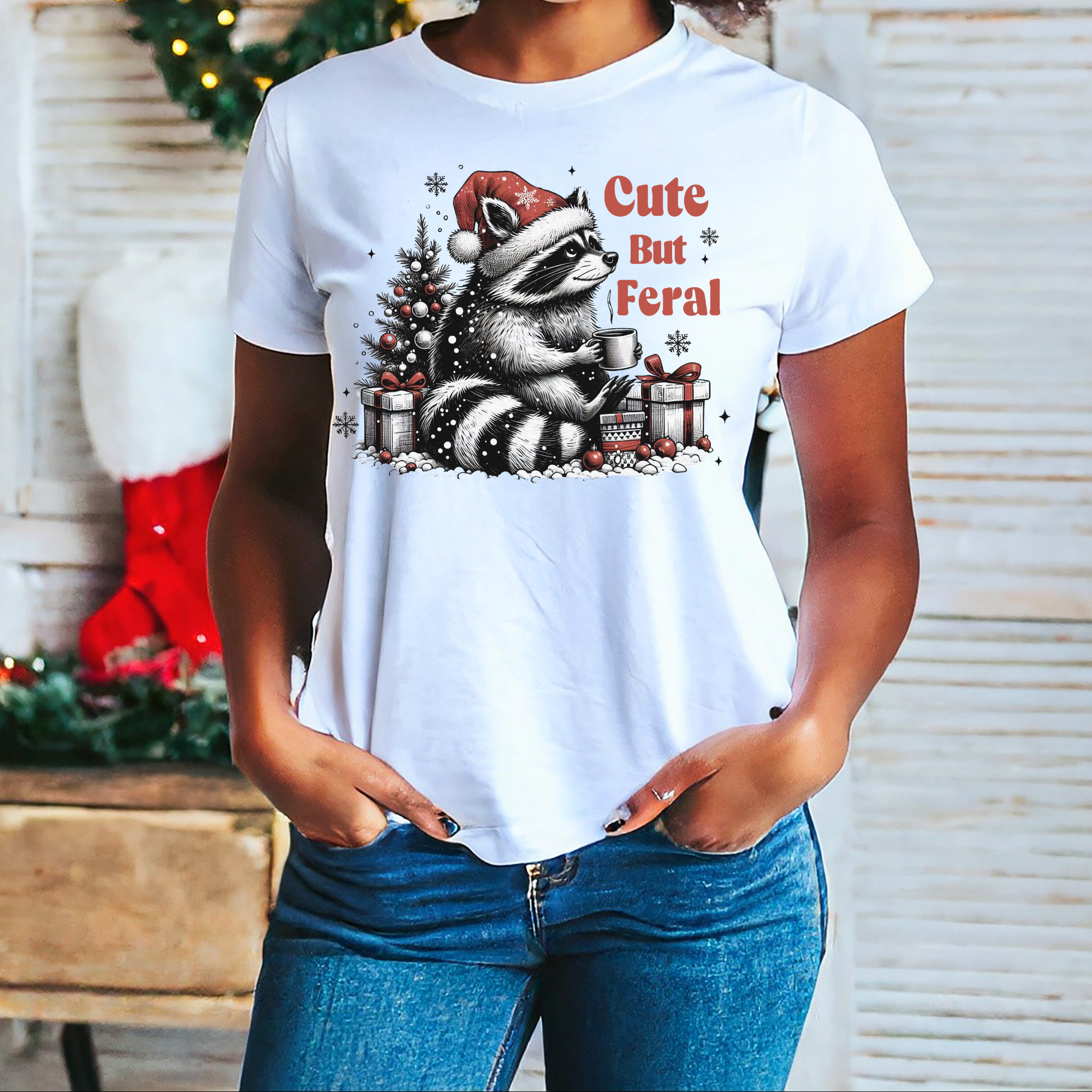 🎄 Sorry Santa – I’ve Been Feral Tee Holiday spirit? More like holiday chaos. This tee is for the festive troublemaker who’s more trash panda than tinsel. Featuring a mischievous raccoon in a Santa hat surrounded by a holiday wreath, this bleached black tee screams “I tried... kinda.” 🐾 Details: 🎅 Graphic says: “Sorry Santa, I’ve Been Feral” 🔥 Bleach-washed for that wild streak look 👕 Unisex fit – runs small; size up for max mischief 🧼 Care Instructions: Wash cold, inside out. Tumble dry low. Feral vibes? Permanent. Tee shrinkage? Optional.