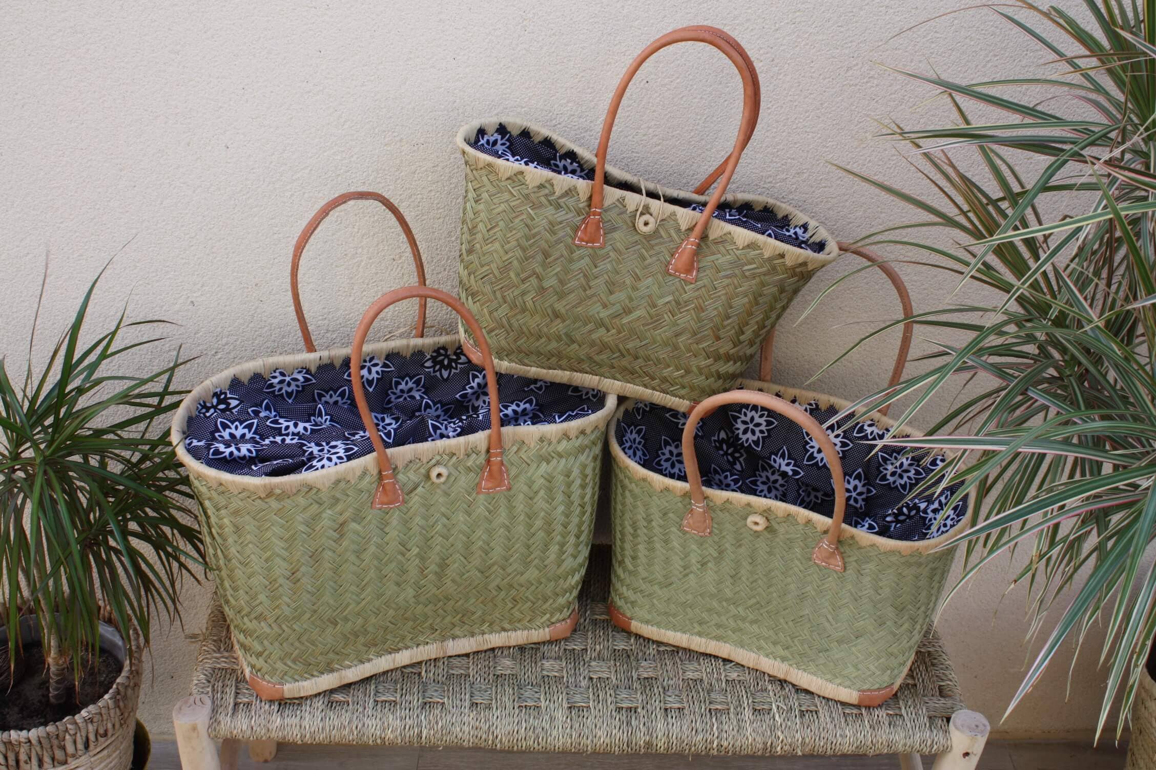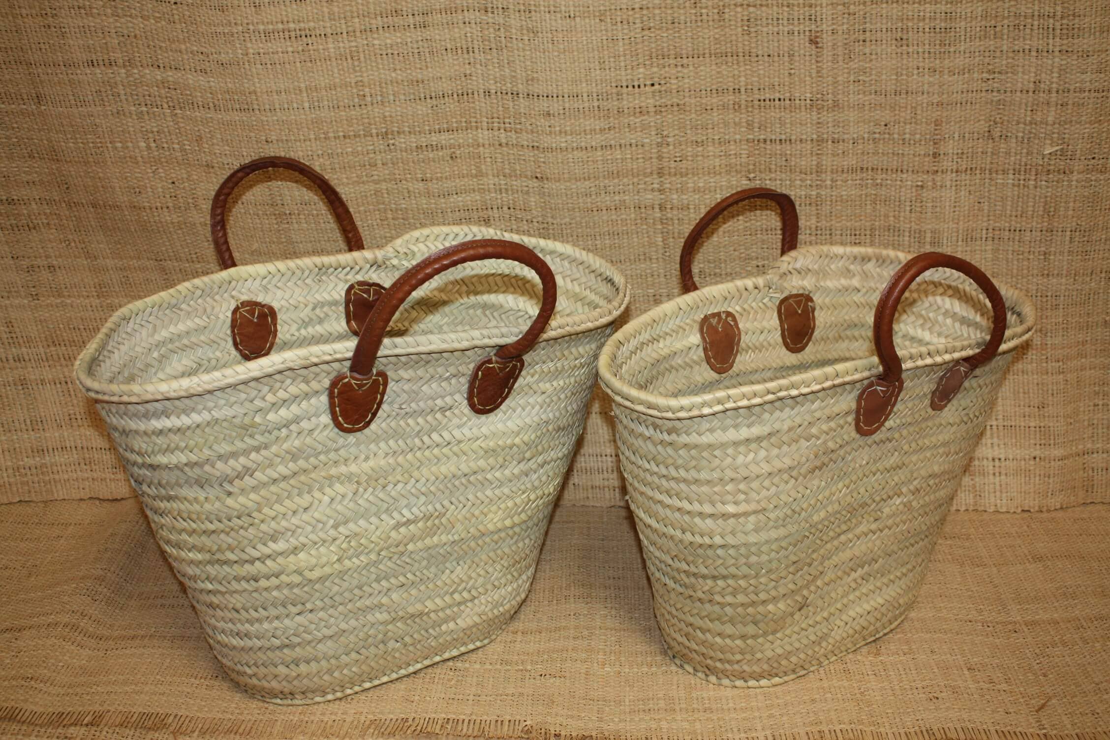 Hidden basket for plants or flowers. In small or large size! EXTRA LARGE VERY STRONG LEATHER HANDLES. POSSIBILITY TO HANG THE BASKET. HANDWOVEN. VERY RESISTANT TO HUMIDITY: INDOOR OR OUTDOOR. Superb for interior decoration but also on a terrace or patio! The basket is made of palm, woven like wicker, rattan, or straw but much more trendy. Natural color. 2 handles for easy transport. 4 sizes: - MEDIUM: Height 30cm / Diameter 30cm - LARGE: Height 40cm / Diameter 40cm - XL: Height 50cm / Diameter 45cm - XXL: Height 60cm / Diameter 50cm The dimensions noted above may vary slightly due to artisanal manufacturing. For our future customers not accustomed to true craftsmanship, small defects or irregularities are possible, making your basket all the more unique! ************************** THESE BASKETS NATURALLY OVALIZE WHEN EMPTY. THESE BASKETS WILL MOSTLY BE SHIPPED FLAT IN A BOX OR PVC FILM TO FACILITATE SHIPPING PREPARATION AND OFFER YOU VERY COMPETITIVE DELIVERED RATES. THEY WILL QUICKLY RETURN TO THEIR ORIGINAL SHAPE ONCE UNPACKED. THANK YOU FOR YOUR UNDERSTANDING.