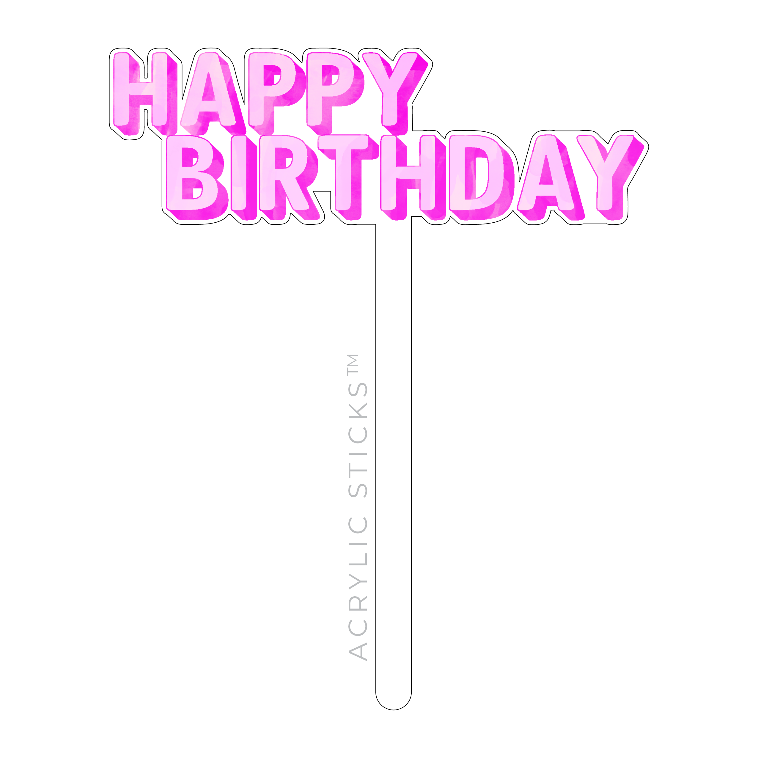 WE MAKE CAKES PRETTY! CELEBRATE IN STYLE WITH OUR BEAUTIFUL, ACRYLIC DESIGNER CAKE TOPPERS! WASHING INSTRUCTIONS: * HAND RINSE WITH WARM WATER OR LIGHT SOAP & WARM WATER * PLEASE DO NOT WASH IN THE DISHWASHER * PLEASE DO NOT USE IN BEVERAGES THAT EXCEED 195-200 DEGREES * DON'T THROW US AWAY! WE ARE REUSABLE! * SOLD INDIVIDUALLY * SIZE: 5" X 7" * 1/8" THICK ACRYLIC * BPA FREE * PFAS FREE * FOOD SAFE * HANDLE WITH CARE TO AVOID CHIPPING, SCRATCHING & BREAKING * ACRYLIC STICKS PRODUCTS ARE WATERPROOF * KEEP OUT OF REACH OF CHILDREN UNDER THE AGE OF 10--if broken, it can present a choking hazard if swallowed * ARTWORK & CAKE TOPPER DESIGN COPYRIGHT OF ACRYLIC STICKS, LLC. DO YOUR SWEETS A FAVOR!