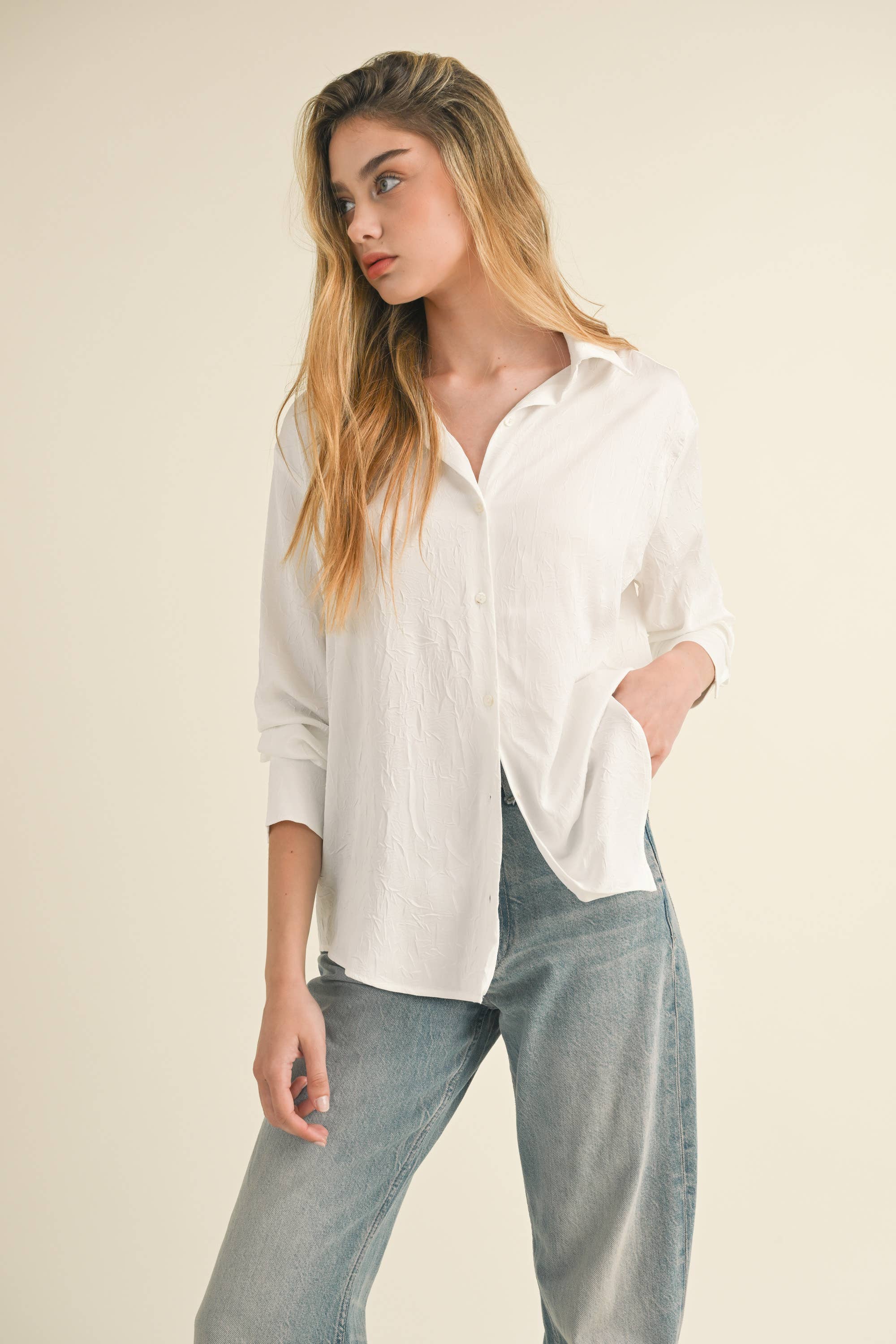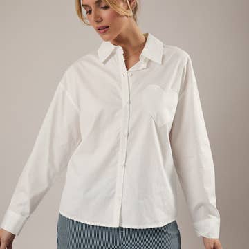 LONG SLEEVE FRONT POCKET WOVEN SHIRT FABRIC: RAYON VOILE 100% RAYON - active basic, active us, blouse, button down shirt, spring, summer shirt, spring shirt, rayon shirt, white shirt, white blouse, essential, office wear, office look, work