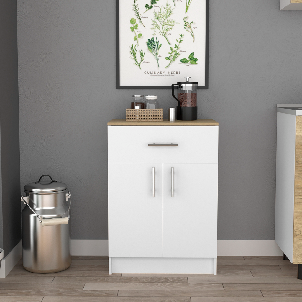 Pamplona double kitchen pantry is the ideal complement if you want to add extra storage to your kitchen without losing your contemporary style. This piece can be used in any room if you are looking for extra storage but especially for your kitchen. It has ample storage, two cabinets with doors (11'' W X 11''W X 12,4''H X 12'4''H) and four Interior shelves for greater comfort. Includes four legs (6,1'') to add a contemporary touch. Designed with elegant light oak-white manufactured wood finish. ASSEMBLY INSTRUCTIONS ---> Click here Dimensions: • Height: 59,2" • Width: 23,9” • Depth: 15,7’’ Furniture Type: Ready to assemble (full assembly required).