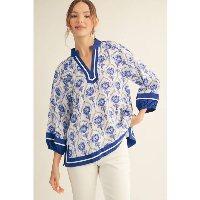 Our Devani Block Print Tunics are hand block-printed on soft 100% cotton material by artisans in Rajasthan, India. The wooden blocks are first hand-carved and the design is then hand-stamped using a different block for each color in the pattern. The seamless printing shows the fine skill of the block-printers, and it is a craft that has been passed down from generation to generation. Each region of India has a different style of block-printing, and each family has their own collection of wooden blocks. • These fair trade tunic tops feature contrast prints on the sleeves and placket and are designed for a relaxed yet elegant fit. • Available in multiple prints and colors, and in two sizes, S/M and L/XL. -------------------------------- • Material: Cotton • Care: Machine Wash in Cold Water, Tumble Dry Low Heat • S/M Size: Shoulders: 16 Inches Across (41 cm) Bust: 40 Inches (102 cm) Waist: 41 Inches (104 cm) Hip: 48 Inches (122 cm) Length: 25 Inches (64 cm) • L/XL Size: Shoulders: 17 Inches Across (43 cm) Bust: 44 Inches (112 cm) Waist: 46 Inches (117 cm) Hip: 52 Inches (132 cm) Length: 27 Inches (69 cm) *Material does not stretch --------------------------------