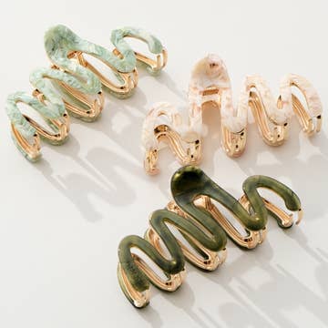 Meet the WAVY HOLD EVERYTHING CLAW – the ultimate hair clip for thick, long, and hard-to-hold hair! The moment you’ve been waiting for is finally here. Our patent-pending wavy hair claw clip is the stronger, sleeker sister to our best-selling Hold Everything Claw (the one everyone’s obsessed with). Designed with a unique wave shape that’s both stylish and functional, this large claw clip grips every strand — even thick, textured, or slippery hair — and keeps it secure all day long. Whether you’re running errands, headed to work, or just running late, this clip stays put (and looks cute doing it). Lightweight, durable, and effortlessly chic, the Wavy Hold Everything Claw is a must-have for every hair type — but especially for those with long or thick hair who need that next-level hold. Size: 5" long x 0.5" wide Best for: long, thick, or textured hair