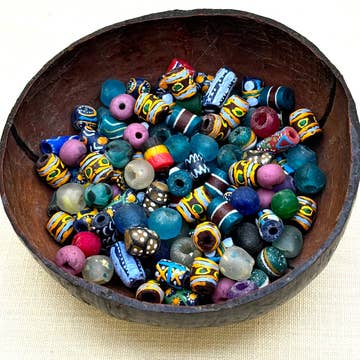 Each bead is handmade from recycled paper by Ugandan artisans. The 3x5 bag has over 250 beads ranging in size from .5mm to 2mm. Perfect for doing craft projects or making your own jewelry. Shapes and colors vary.