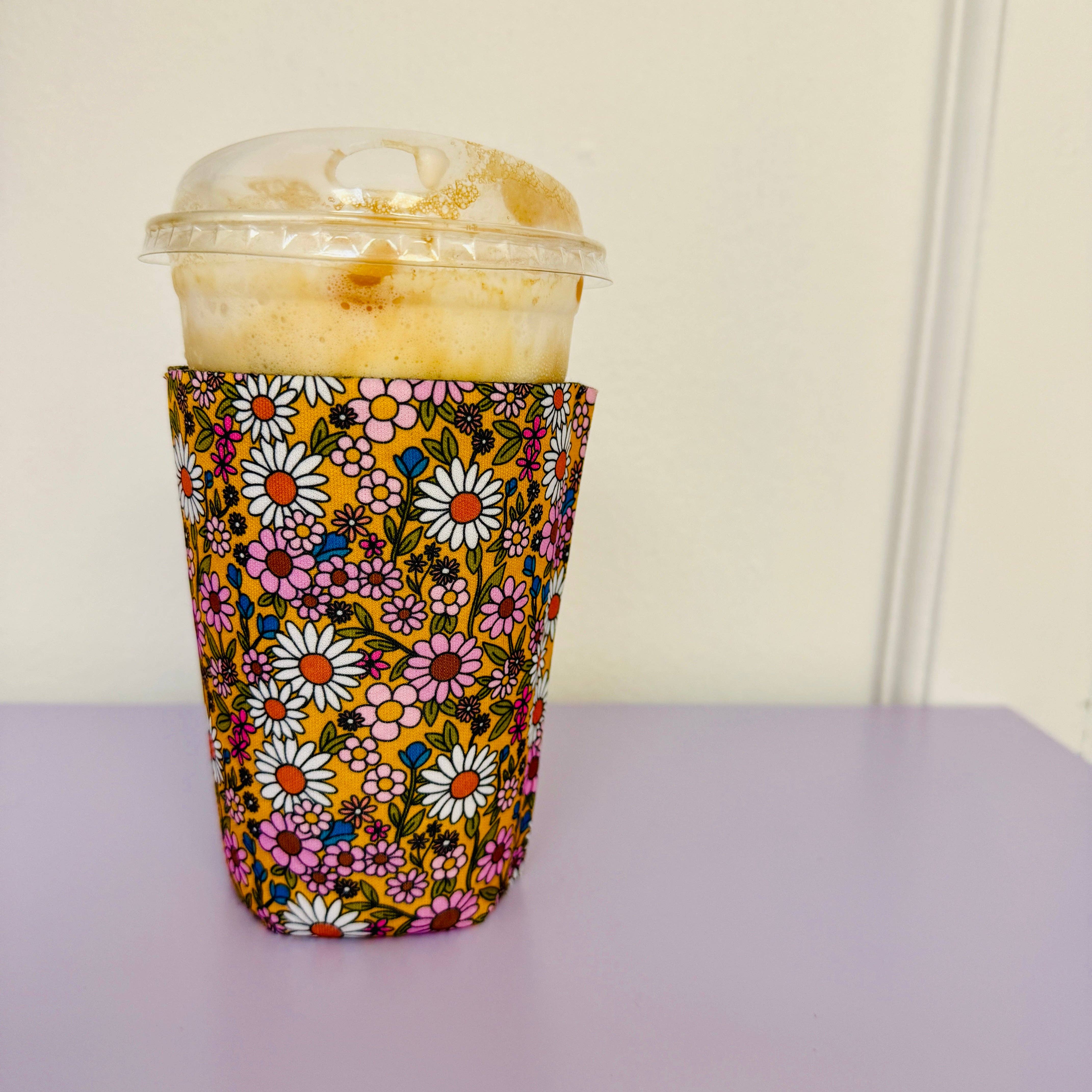 This neoprene foam sleeve effectively insulates drinks for 16-20 oz cups. It folds flat and easily fits into your purse.