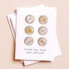 This versatile congrats / friendship / thank you card features all your favorite dim sum treats, paired with a funny, food-inspired pun. Great for: foodies, bffs, Valentine's Day, Galentine's Day, congratulations, thank you, just because Amy Zhang products are a true celebration of New England small businesses, community, and partnership. Each design features an original watercolor illustration, created by Amy in our historic Providence, Rhode Island studio. Greeting cards are printed on locally-sourced paper and packaged by our woman-owned partners in Massachusetts. DETAILS — - Single folded greeting card (blank inside) - Card measures 4.25" x 5.5" (A2 size) - Matching brown envelope included - Card and envelope are packaged in open top clear sleeve