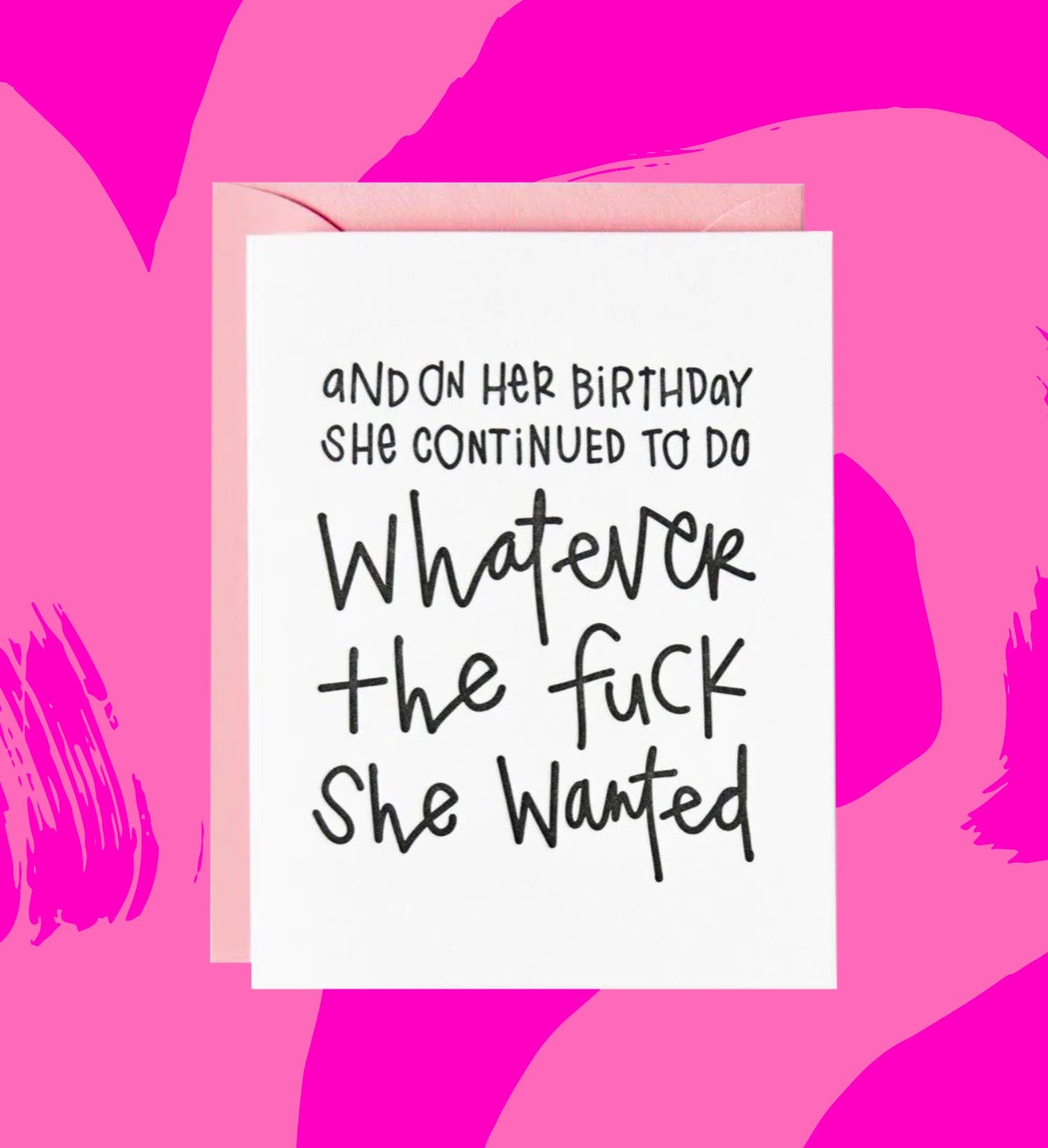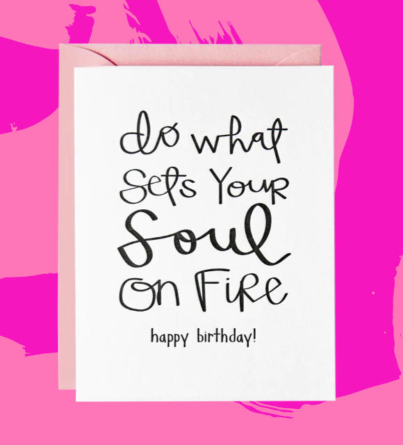 Our "Exactly Who She Is" birthday card is printed by hand on an antique letterpress. It is printed with black ink on thick, brilliant white 100% tree-free cotton paper. It is paired with a blush pink envelope. This card is part of our second CLxPE collaboration with Chelsea Leifken! 5.5" x 4.25" folded card, blank inside. © 2021 Paper Epiphanies. All Rights Reserved.