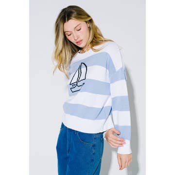 ROUND NECK LONG SLEEVE 'SEA' GRAPHIC SWEATER