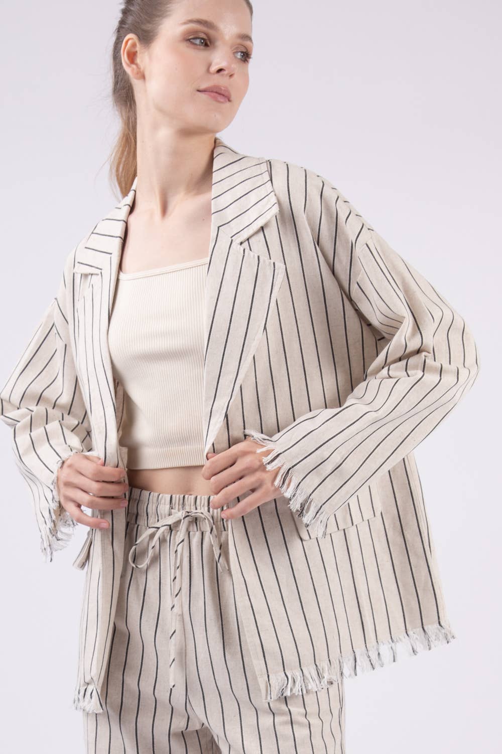 Step into everyday elegance with DAIRI's 786 ST1 Jacket. Crafted from a unique blend of 65% Cotton and 35% Rayon, this jacket exhibits a casual aesthetic that's perfect for spring/summer wear. With long sleeves and an array of buttons, it offers a missy fit that celebrates the female figure. Care is effortless with machine wash instructions. The hand-woven, natural Moroccan cotton, known as Sousdi, ensures vibrant colors and a sensuous drape, embodying the enduring fashions women perennially desire.