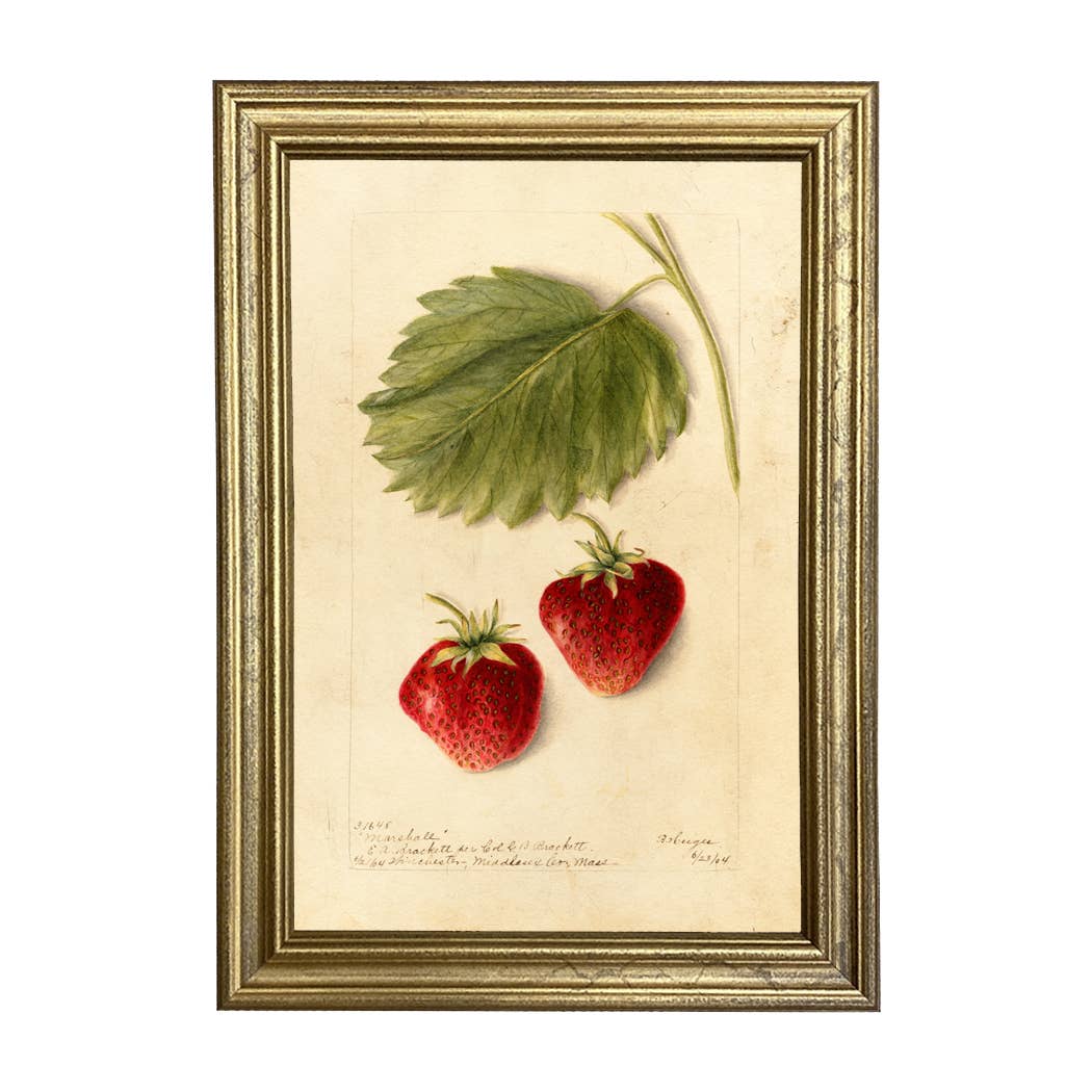 Materials: archival fine art prints on high-quality art parchment cardstock, archival giclee inks used. An option of one or two strawberry art prints as shown in the pictures. Size options are listed. Read the full description. Vintage-styled cute strawberry prints These vibrant strawberry illustrations have been digitally enhanced and restored to bring out their depth of colour and detail. The images also include elements of French ephemera and have been added to an aged rustic vintage background which retains some of the original imperfections of a time worn adding to their vintage charm. These vintage-styled prints are done on high-quality parchment cardstock (65 lb) to enhance the artistry.