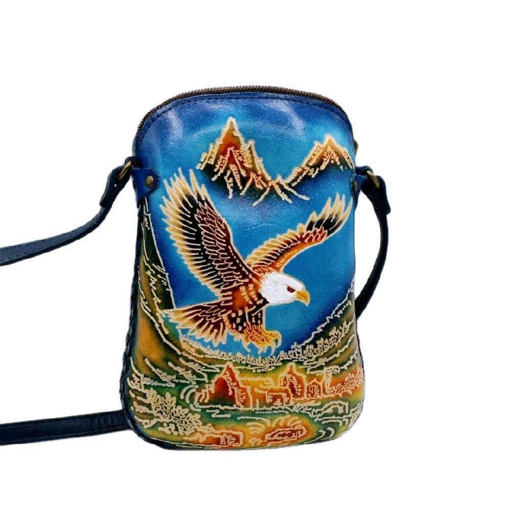 Our multi-use extra-large wallets are great for carrying in your purse or by themselves. Created from premium genuine leather with hand-tooled designs. sturdy zipper closure with wristlet strap attached. Inside are multi compartments for carrying bills, credit cards, coins, checkbooks, and more! Size is 8"wide by 4.5 high and 1.5 deep.