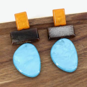Two stacked organic shaped tagua dangles on a gunmetal lever back style ear hook. I try to place the smaller size on top, larger on the bottom, although sizes vary due to the organic nature of the product. Custom color combinations are available!