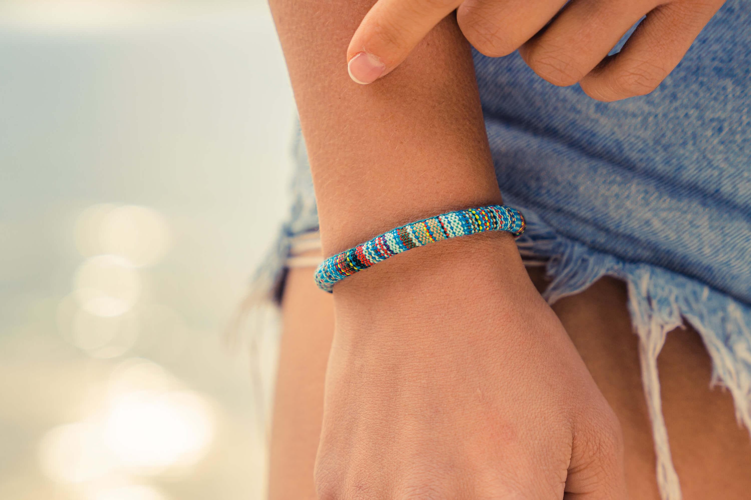 Our Made by Nami surfer bracelets in boho style are 100% waterproof and handcrafted from sustainable cotton. We pay special attention to high quality during production, which makes our bracelets robust and durable. Wear them while surfing, snowboarding, and showering. 100% Waterproof High wearing comfort due to 100% sustainable cotton Unisex m/f/x & children Adjustable size with sliding knots
