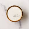 Weāve poured our signature soy candle into a chic gold travel tin so you can take a little bit of home with you wherever you go. Each tin holds 3.5 oz. and the wood wick will deliver a crackling glow for up to 15 hours. Each one of our soy travel candles burn cleanly and safely and when youāre done pop on the lid and your candle will be ready for your next escape. These tins have been customized with a textured paper label that reads "Just Because". Details: * Hand poured in Grand Rapids, MI * 100% soy wax that is grown in the USA * Burn time: 15 hours * Dermatologically tested, skin safe * USA sourced wood wicks * 100% phthalate free * Lower melting point, will not burn or stain if spilled * Poured into a new 4 oz. tin * 3" wide and 1" tall