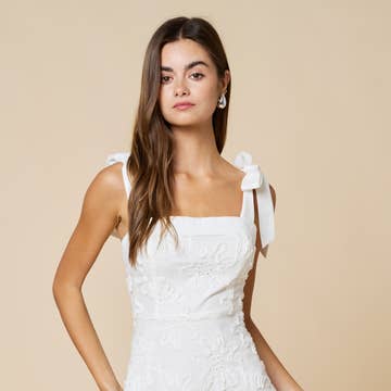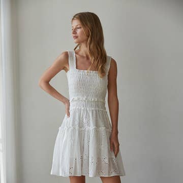 Timeless lines with precious details to bring an enduring charm to the lace mini dress. A wonderful choice for sun-drenched days with delicate lace embellishments adorning elasticated bodice and tiered skirt. 100% Nylon Model is 5'10" and wears a size Small
