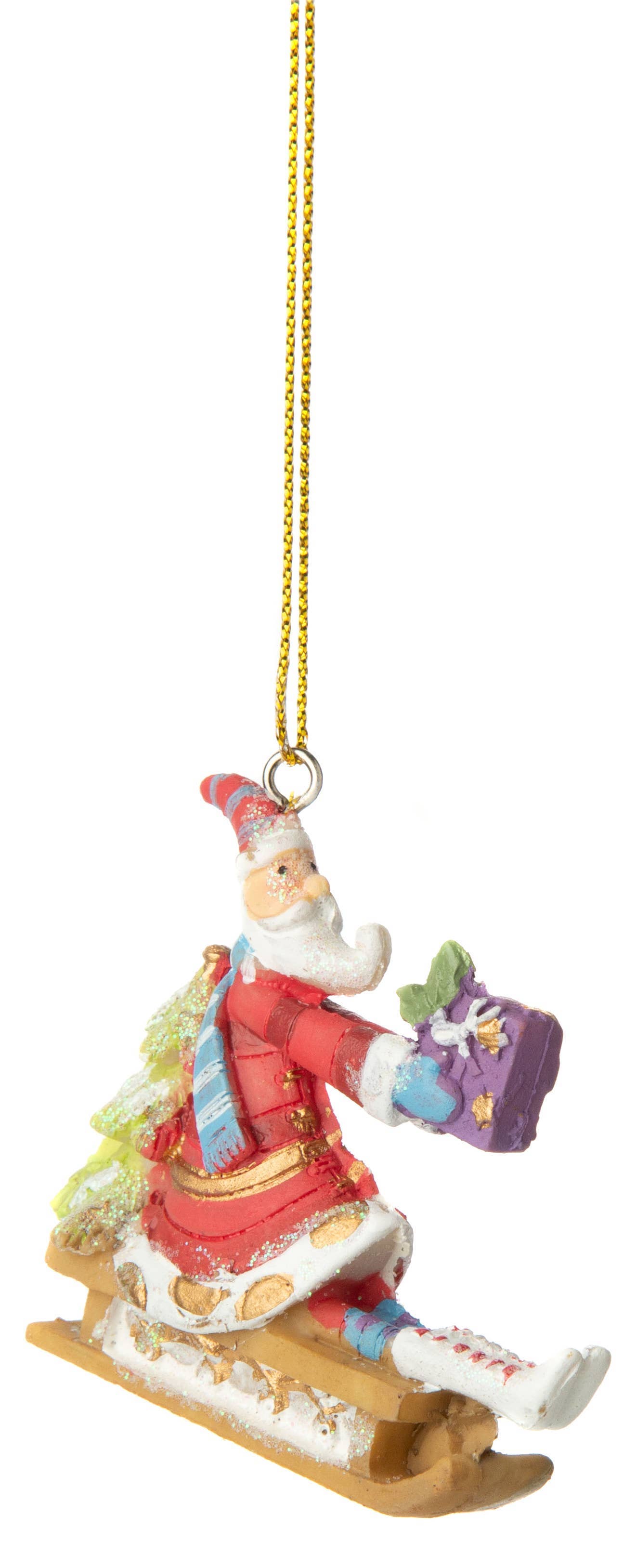 6.25"NOBLE GEMS GLASS SANTA IN CHAIR ORNAMENT W/SWAROVSKI STONES.