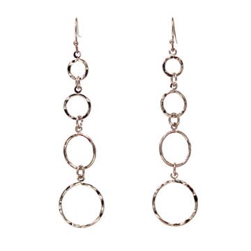Plated Metal Long and Light Graduated Circles Earring, 2 1/2"