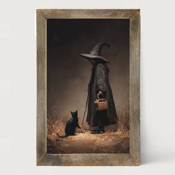 Step into a vintage-inspired world of eerie beauty with this surreal original artwork by Caitlyn Grabenstein (Cult Class). This hauntingly captivating artwork features a silhouetted witch perched atop a roof under the glow of a crescent moon, evoking a chilling yet enchanting horror aesthetic. Perfectly blending retro vibes with supernatural intrigue, this piece adds a touch of mystique to any space. This 8.5x11" fine art print is expertly produced on Baryta Photographique II paper by Canson Infinity, known for its museum-quality finish and rich, luminous detail. Each print is crafted with precision, printed, and hand-packed in the USA to ensure exceptional quality and care. Printed with borders 100% Alpha-Cellulose 310 gsm 100% Barium Sulphate Layer Acid-Free