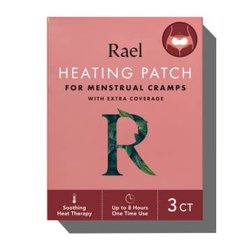 Rael was created for women by women. We are committed to sourcing the highest quality ingredients, developing innovative products, and offering easy access to healthy alternatives for women around the world. We can't give you a hug when you're feeling crampy, but we can come close. Our heating patches instantly warm up to an ideal, therapeutic temperature to promote blood flow and help your muscles relax for maximum relief. Our new XL Heating Patch to calm all of your period woes from pelvic cramps to back aches, and everything in between. Made with lemon balm, juniper berry, jasmine, dandelion root, and rosehip. Made without harsh chemicals that disrupt your hormones and irritate your skin. Size: 3 ct.